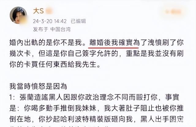 当年大S在离婚声明里隐忍不发,后来忍无可忍才公布真相——汪小菲不仅出轨,还在争吵中推倒小S,拿精装书砸她。